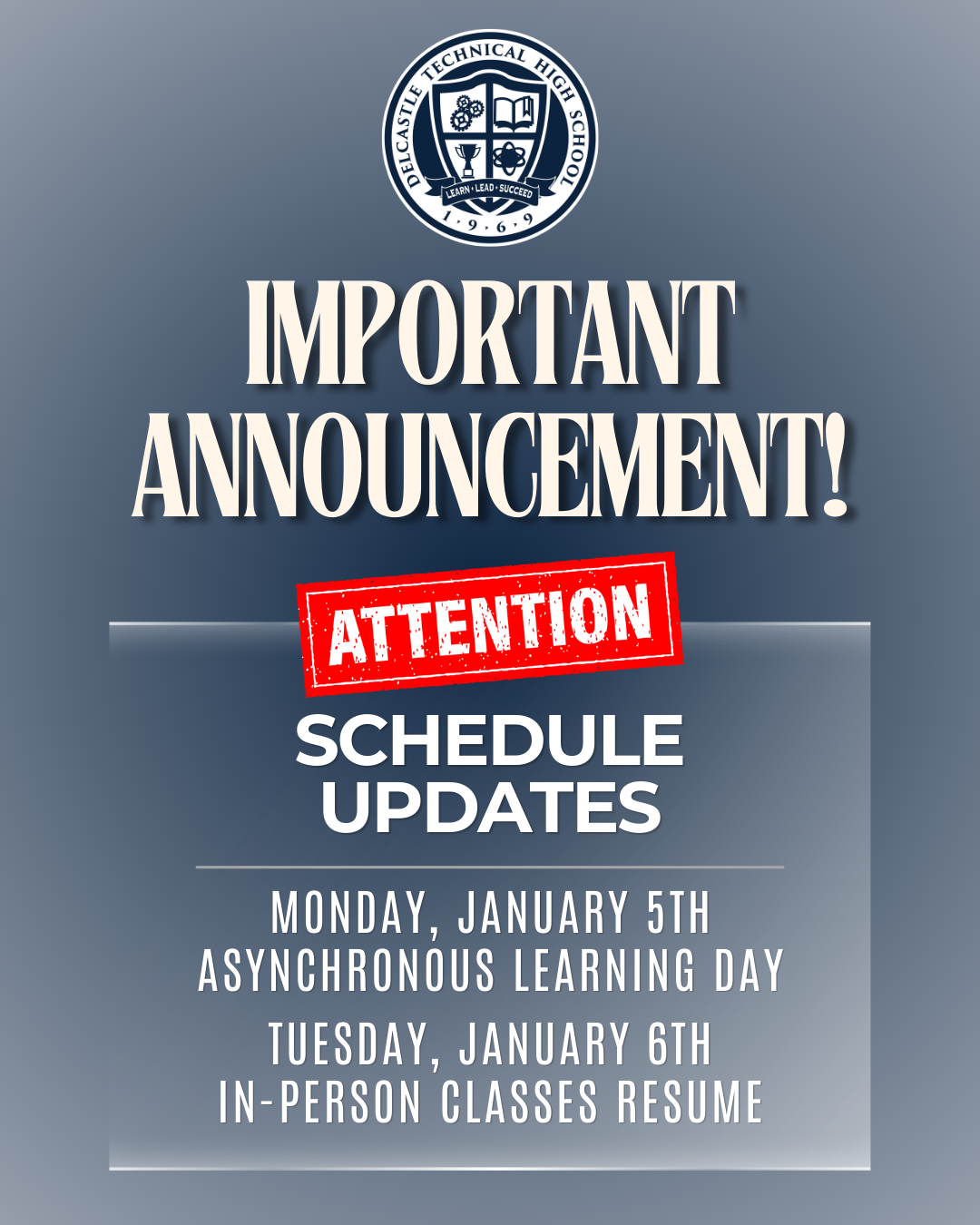 Out of respect for the fallen hero who was killed in the line of duty, and in coordination with regional partners, all NCCVT school and offices will operate remotely on Monday, January 5, 2026.